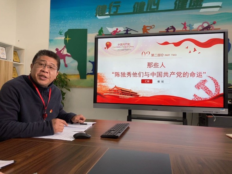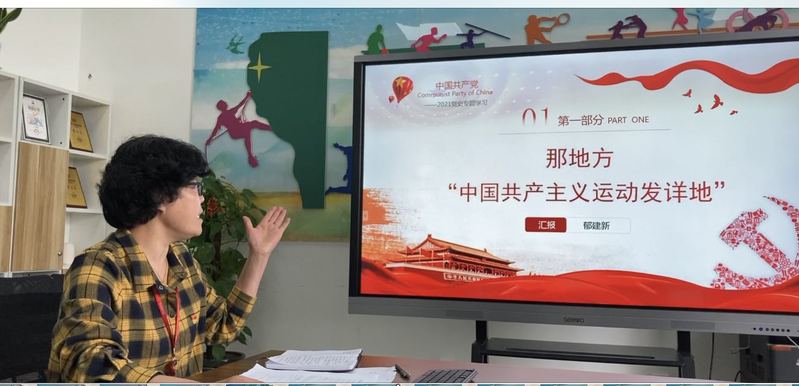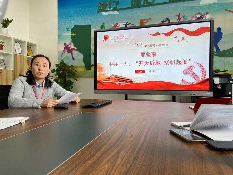 此次学习紧紧围绕“学党史、知党史、讲党史”主题,以“百年党史我来讲”的形式开展党史学习教育,让支部的党史学习教育“齐参与”“有人气”“接地气”。首次党史专题学习是由书记郁建新、副主任崔斌、办公室主任傅宇领讲,分别从“那地方-中国共产主义运动发祥地”、“那些人-陈独秀他们与中国共产党的命运”、“那些事-开天辟地 扬帆起航:中共一大”三个角度来讲述中国共产党的诞生。
