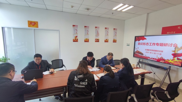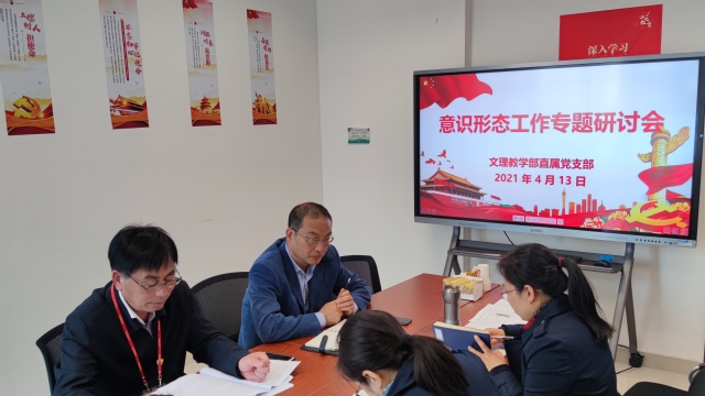 为加强和改进新形势下教学部意识形态工作,贯彻落实学校关于意识形态工作的要求,提高教学部教师对意识形态工作的高度重视和正确认识,进一步做好教学部意识形态风险研判工作,理清日常工作思路,文理教学部于4月13日中午在南苑2号楼306会议室召开了、意识形态工作专题研讨会。会议由教学部直属党支部书记秦禹权主持,主任耿铭、副主任侯丽英以及支部委员、工会主席参加会议,巡察组成员解晓峰列席了会议。