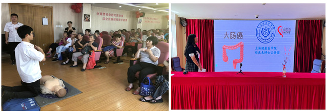 同时,积极发挥党建带团建作用,提升协同育人实效。“兔博士”健康宣讲团的钟尧东同学从CPR(心肺复苏术)急救、突发事件的应急处理、如何预防常见疾病等多方面,结合实际案例,以通俗易懂、和谐幽默的语言,为居民们进行详细讲解。讲座现场气氛活跃,社区居民们就一些自己关心的急救知识进行了交流互动。“兔博士”健康宣讲团顾臻、柴一览、彭振宇同学进行了大肠癌的预防宣讲,同学们分别从大肠癌的病因、症状、筛查和预防等方面进行了详细介绍,加强了居民们对大肠癌的了解,提高了防范意识。