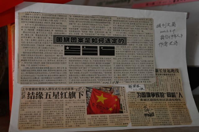 中华民族伟大复兴进入了不可逆转的历史进程,五星红旗风自信飘扬在世界各地的上空中。80多岁的楼宇生先生是五星红旗设计者曾联松的生前好友。他亲切接待大家进屋后,便翻出当年的国旗设计原稿、照片及书籍报刊等资料,生动地为支部师生们讲述国旗设计时背后的故事并展示曾联松先生设计国旗时的资料。
