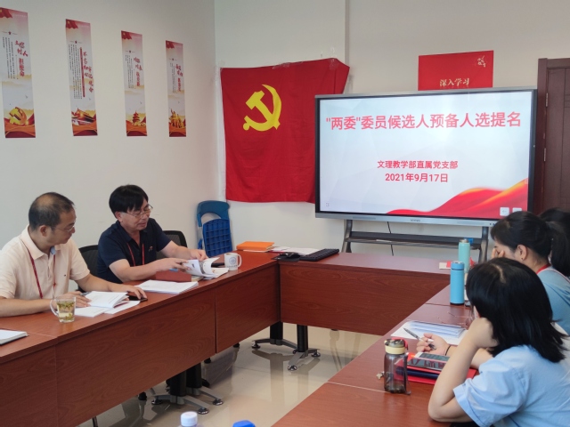 9月17日下午,文理教学部直属党支部在南苑2号楼306会议室顺利完成中共beat365官方网站第一届委员会委员和第一届纪律检查委员会委员(以下简称“两委”委员)候选人预备人选提名推荐工作。会议由党支部书记秦禹权主持,支部全体党员参加。