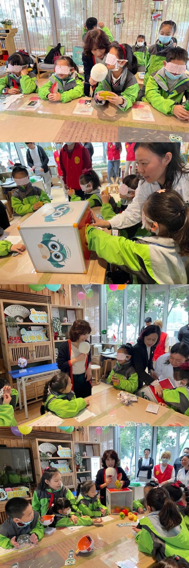九三学社支社的社员还精心设置了“盲盒猜猜猜”小游戏环节,孩子们轮流从盲盒中摸出一个模型,用双手触摸来辨别出是什么水果或蔬菜,既增强了通过不同感官解读物品信息的能力,也让孩子们更直观地体会到爱眼护眼的重要性。