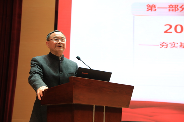 黄钢强调,2021年首要工作是学好党史,指导学校跨越提升!要将党史学习教育成效转化为工作动力和成效,从党史中汲取学校发展的勇气和力量,大力弘扬干实事、求实效、创实绩的优良作风,凝聚心往一处想、劲往一处使的强大力量,开创发展新局面。黄钢指出,以应用型人才培养为核心,深化教育教学模式改革是坚守立德树人根本任务,全面提高人才培养质量的重中之重,并就学分制改革、实践改革、专业改革提出了具体思路和相关路径。黄钢指出,打造特色鲜明的学科体系,提升科研产出能力,应用转化是关键,要加强科研平台建设,促进科研产出和成果转化。