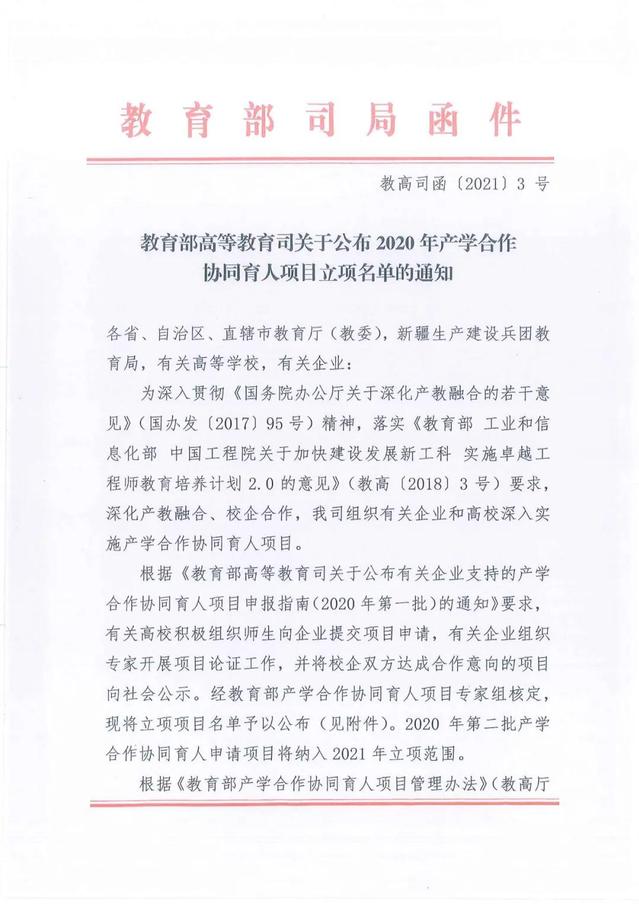 产学合作协同育人项目是由教育部主导的育人研究项目,自2016年启动,每年分为两个批次进行立项。主要面向企业征集合作项目,由企业提供经费支持,以产业和技术发展的最新需求推动高校人才培养改革的项目,是教育部推动新工科、新医科、新农科、新文科建设,推动高校人才培养改革的有力抓手。