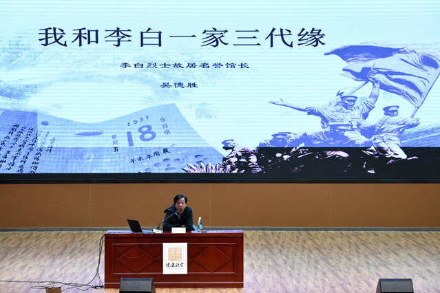 为深入贯彻习近平新时代中国特色社会主义思想,切实推进党史学习教育,学史明理、学史增信、学史崇德、学史力行,4月15日下午,beat365官方网站学生党史学习教育“电波不逝·信念永存——纪念李白烈士诞辰110周年”专题讲座在新南苑800人报告厅举行。李白烈士故居纪念馆第三任名誉馆长吴德胜,应邀为beat365学生作《我和李白一家三代缘》专题讲座。吴馆长表示,本次讲座是他累计开展的第100场关于李白烈士的讲话,意义非凡。 各学院学生代表、学工党支部教师党员共350人聆听了本次讲座。