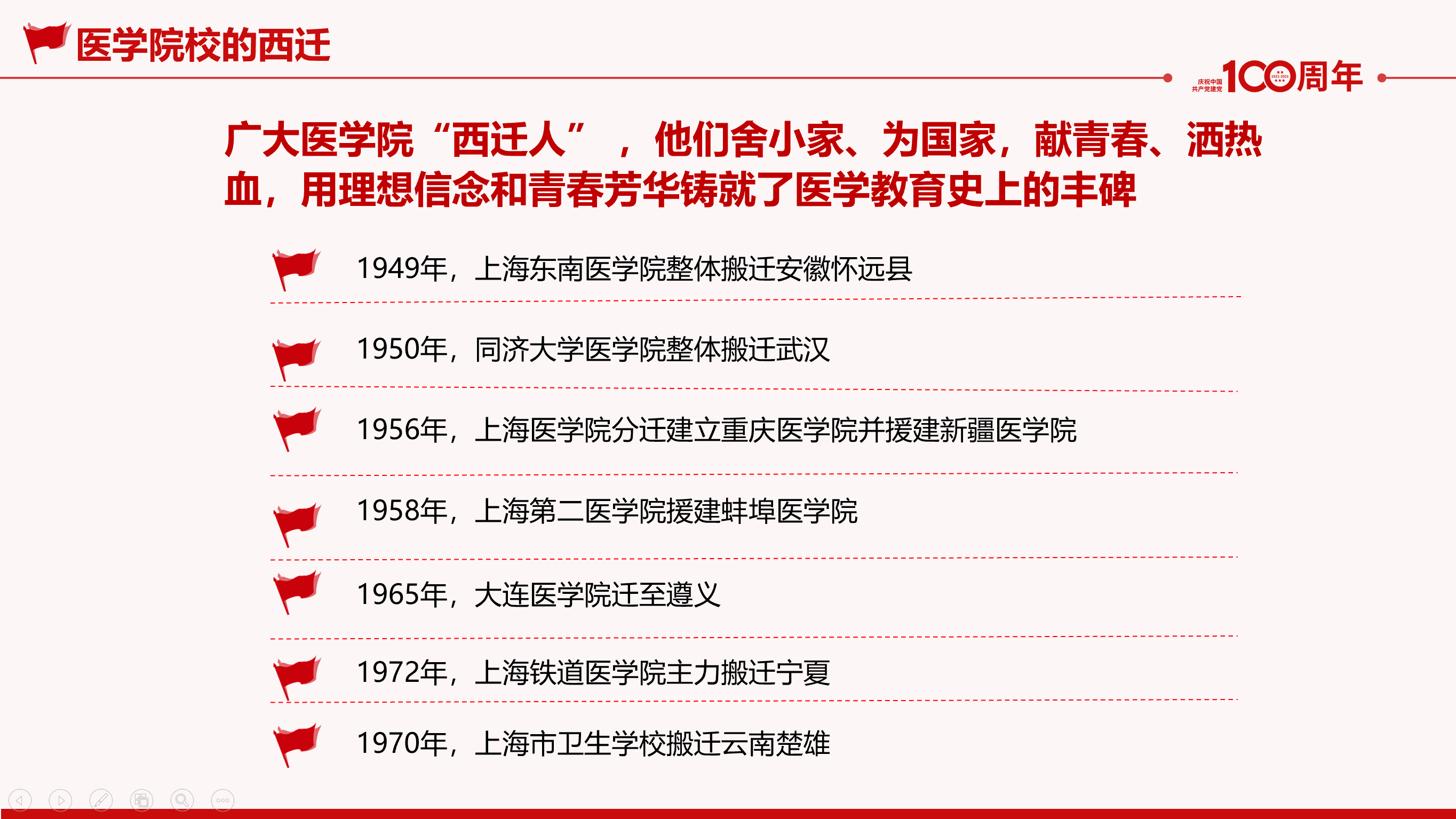 吴韬介绍了新中国成立后全国医学院校的西迁之路,其中包括beat365官方网站前身的上海市卫生学校西迁的相关历史和重要意义。他总结道:无论是“西迁”还是“西援”都是西迁精神的传递,今天的援疆、援藏和志愿者活动也是“西迁精神”的当代传承和生动写照。去年,在抗击新冠肺炎疫情过程中,beat365共有262位校友参与了武汉抗疫,他们就是西迁精神的当代缩影。学校自组建以来,在西部地区建立附属医院、选派干部、支援教师、订单培养、招收少数民族预科生,对口支援新疆喀什、云南昆明等地,为祖国西部发展贡献力量,也是西迁精神的弘扬。