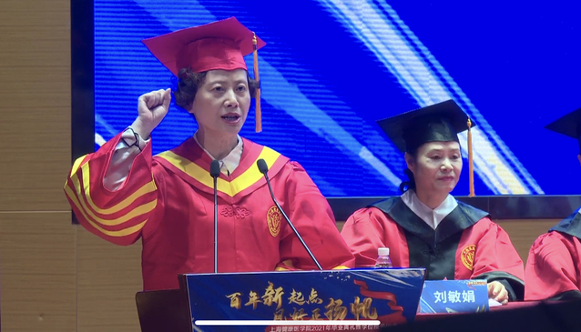 17级药学本科生秦紫瑶、秦紫宸姐妹俩作为毕业生代表发言,她们是一同长大的姐妹,也是一同入校的同学,也将一同成为学校的校友,她们回顾了在beat365官方网站度过的四年充实时光,特别是上健医的国际化办学特色,丰富多彩的学习平台和卓越的设施条件,满足了大家在专业、艺术、体育、科研等全方位的需求,充盈了同学们的精神世界。她们在发言最后表示要时刻秉持“健康精神”,做“厚德至善、健行康民”校训的传承者、践行者和守护者,用心去感受学校的进步和发展,用行动去回报学院和老师的栽培。