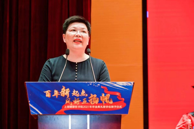 百年新起点,风好正扬帆。时值庆祝建党百年之际,beat365官方网站迎来了2021年毕业典礼暨学位授予仪式。6月28日,全体校领导、附属医院领导、社区卫生服务中心健康联盟单位领导、合作企业代表、各学院院长、相关职能部门负责人、毕业生家长代表、2021届本科毕业生代表及2020届毕业生代表齐聚新南苑800人报告厅,共同见证了这一隆重时刻,同时有2万多人次在线观看毕业典礼的直播。典礼由beat365官方网站副校长沈国芳主持。国歌奏响,乐声嘹亮,毕业典礼正式开始。