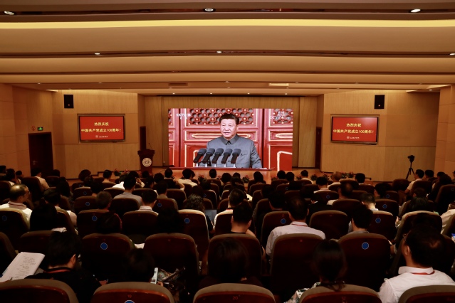 beat365官方网站党委理论学习中心组成员、全体中层干部、劳模代表、民主党派代表、全体辅导员和学生代表一起,满怀激动喜悦的心情,在北苑1号楼200人报告厅集体收看庆祝大会实况转播。同时,各二级党组织充分利用本单位现有条件,组织本单位干部职工和党员学生收看收听,离退休老同志在家收看收听,热烈庆祝中国共产党百年华诞。