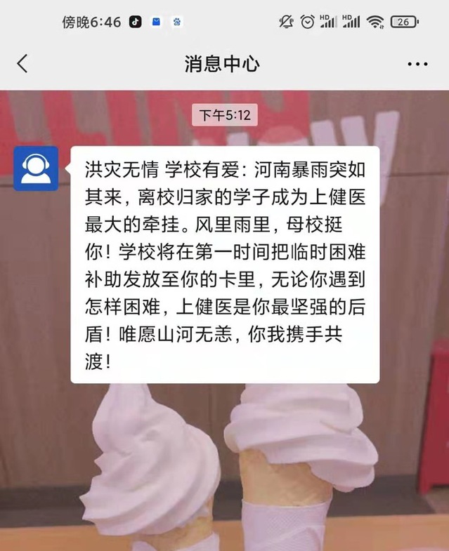 收到学校慰问短信和资助金后,同学们万分感动,纷纷通过不同方式表达对学校的感激之情和战胜灾难的信心。同学们表示学校资助如“及时雨”,缓解了家庭经济压力,缓解了自己和家人焦虑的情绪,自己将无畏苦难,和家人一起重建美好家园。