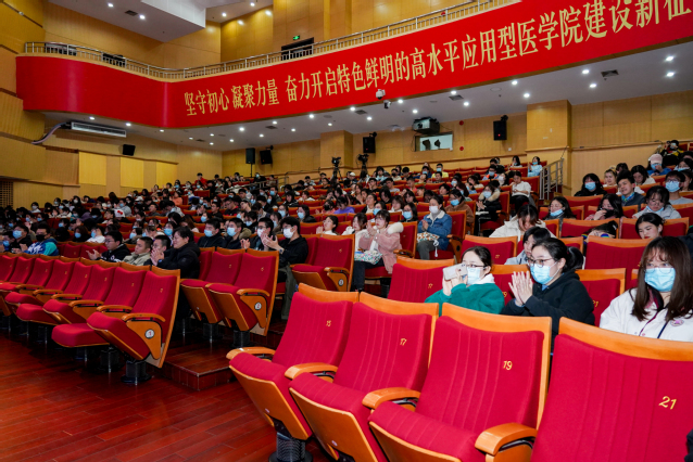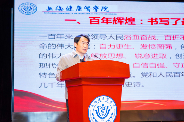 第二篇章,医疗器械学院党总支书记、副院长李晓欧结合党的十九届六中全会会议精神,立足beat365官方网站办学特色,结合学校第一次党代会精神,以“砥砺前行:凝聚团结奋斗的力量”为题,与全校师生一同“数”说beat365官方网站的发展成就、奋斗历程和发展愿景,领略上健院自建校以来一代代“健康人”拼搏奋进、提升校院两级管理服务效能、深化“三圈三全十育人”体系、“四史”学习教育、完善“五育”融合机制、建校创业六年、七十多年办学历程积淀的丰厚文化底蕴和光荣办学传统、努力做好八个方面的工作、十余载为上海培养基层“健康守门人”和十个方面的成就等,让全体师生勇担“弘扬上健医精神 奋力构筑健康梦”的使命与担当。