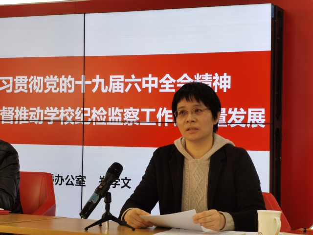 郑学文同志从学习党的自我革命这一百年奋斗经验着手,结合工作实践、思想认识和岗位工作,作了《深入学习贯彻党的十九届六中全会精神,以高质量监督推动学校纪检监察工作高质量发展》的交流发言,围绕纪检监察部门履行政治监督这一首要职责,聚焦2022年学校本科教学合格评估、地高大项目建设、全面从严治党等重点工作,提出具体化、常态化的思路举措。