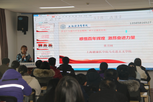 为深入学习宣传贯彻党的十九届六中全会精神,12月30日下午,医疗器械学院党总支和康复学院党总支在新南苑18号楼410室举办党的十九届六中全会精神学习辅导会,本次学习邀请上海市教卫工作党委理论宣讲团成员、校马克思主义学院曹月柱副院长作《感悟百年辉煌 激昂奋进力量》专题报告,医疗器械学院全体教师党员、康复学院全体教师党员等参加此次学习。