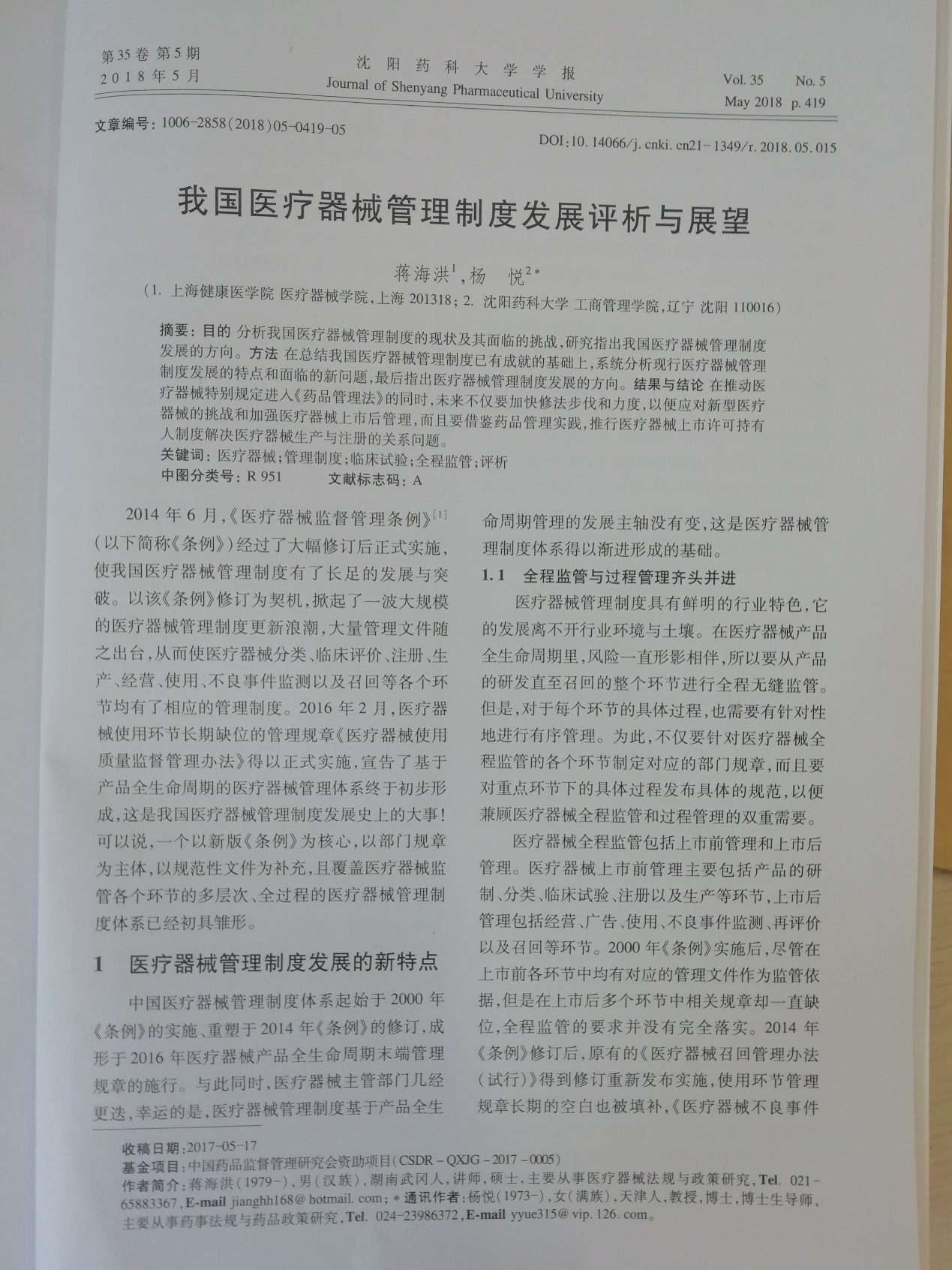 参加工作以来,他主持省部级纵向课题以及横向项目12项,获得了beat365官方网站“2015年度科技工作突出贡献奖”,以第一作者身份在CSSCI、北大核心期刊以及其他期刊杂志发表学术论文近20篇。他还在《中国医药报》《健康报》《医药经济报》等医药权威报刊头版头条或个人专栏上发表文章40余篇,并担任《上海经济》《中国医疗设备》杂志审稿人,《中国医学装备》杂志编委;中国医疗器械蓝皮书(《中国医疗器械行业发展报告》)系列丛书副主编,国家卫生健康委员会“十三五”规划教材主编,共出版专著1部,主编书籍6部。2018年承担校百人库项目一项,在该项目的资助下以第一作者身份在《沈阳药科大学学报》上发表学术论文《我国医疗器械管理制度发展评析与展望》(2018年5月),该论文研究了中国医疗器械监管制度的发展趋势。