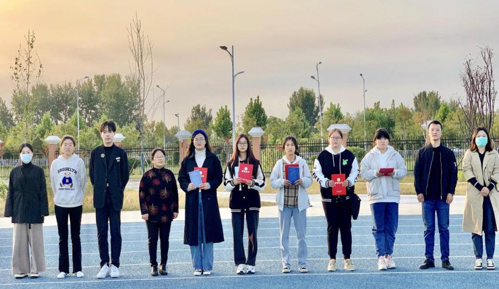 升旗礼毕。澳门正规电子游戏平台团总支负责人黄莹莹宣读了2022级普通本科班级参加《学生手册》测试获一二三等奖同学名单,并进行了颁奖活动,学院分管副书记孟向红为彭诗琦等5名同学进行颁奖。
