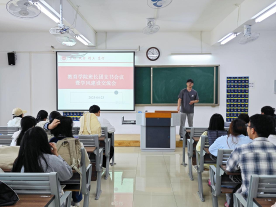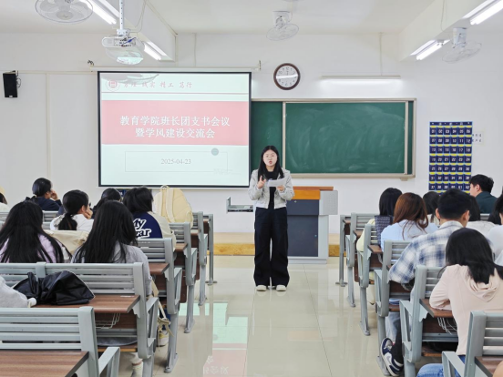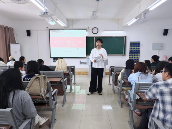 会上,团总支副书记郭鸿鑫以详实的数据向大家介绍了学院2025届毕业生考研情况及过往的班级学风建设情况,他说,学风建设已经成为我校为“质量立校”的重要抓手,同学们在日常的学习生活中注重学习习惯的养成,并取得了一定的成绩。他说,截至目前,我院共有83名毕业生被录取为硕士研究生,其中2021级英语刘梦云同学被吉林大学录取,女生1栋337宿舍更是创造了全员上岸的优异成绩,四名女同学全部考上了自己心仪的学校继续深造。郭鸿鑫老师希望更多的班级能像这些榜样们学习,并要求班长团支书在班级做好领航作用,带动更多的同学共同进步。