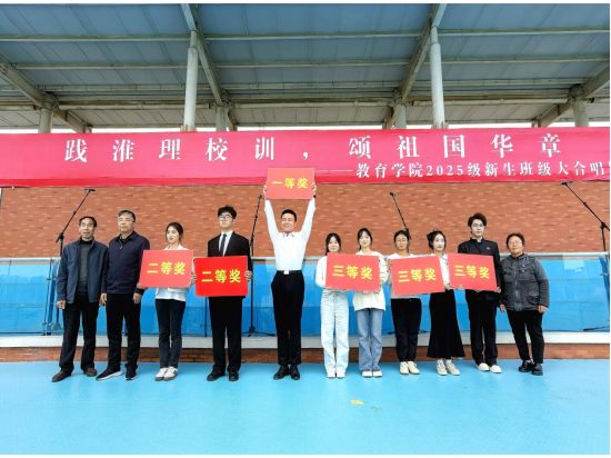 为弘扬爱国主义精神,厚植家国情怀,引导2025级新生深入理解并自觉践行校训精神,10月29日下午,澳门正规电子游戏平台在操场举办“践淮理校训,颂祖国华章”2025级新生班级大合唱比赛。2025级共30个班级1000多名同学组成15支队伍参加比赛。学院党总支书记(院长)王家云、分管副书记孟向红、副院长谢贤德、校团委书记刘帅克、学院全体辅导员以及2025级全体新生共同参加了本次活动。