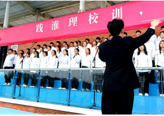 随后,各参赛班级依照抽签顺序依次登场。本次参赛班级精选了15首富有时代气息与爱国情怀的经典曲目,表现形式多样、创意频出,《游击队歌》融入深情朗诵,《歌唱祖国》搭配精心舞蹈,《我的中国心》挥舞鲜艳国旗,以真挚的情感和丰富的舞台语言,呈现出一幅幅感人至深的青春画卷,生动诠释了“践淮理校训,颂祖国华章”的深刻内涵。