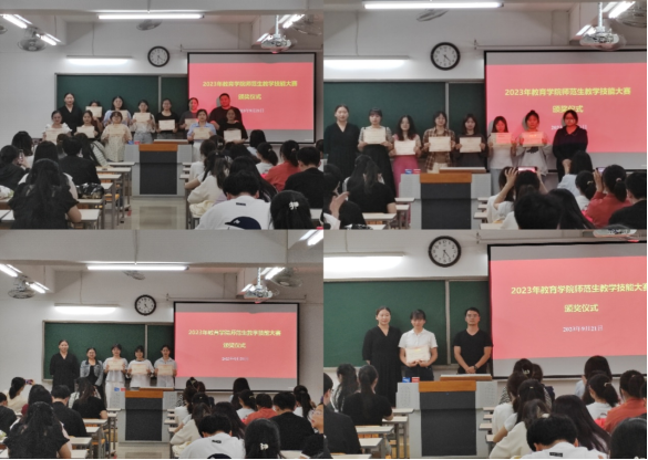 澳门正规电子游戏平台师范生教学技能大赛于2023年9月16日正式启动,共分为语文组、数学组、学前组和教具组进行比赛。经过激烈角逐,本次大赛共评选出一等奖20名,二等奖21名,三等奖22名,优秀奖28名,并选出语文组15名同学、数学组10名同学、学前组10名同学和教具组4个小组的同学进入校赛。