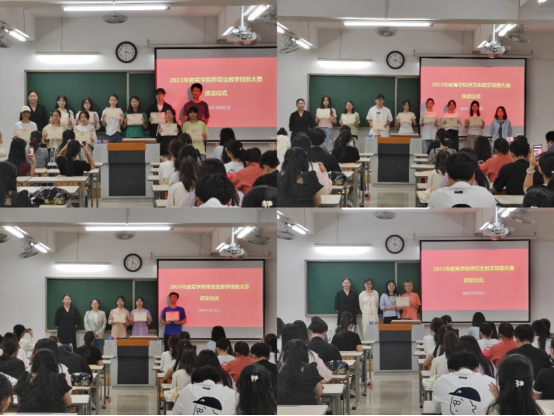(郝子靖老师、李姜悦老师、郝佩佳老师和邵和君老师为优秀奖获得者颁发荣誉证书)