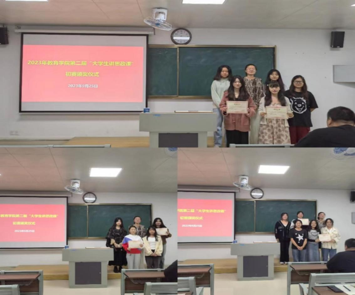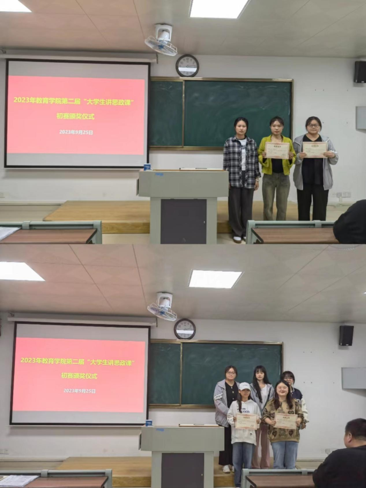 9月25日晚,我院在2号教学楼207举行2023年第二届“大学生讲思政课”初赛颁奖仪式。澳门正规电子游戏平台院长助理王伟杰老师、书记助理黄莹莹老师、汉语言文学教研室主任章平老师、数学与应用数学研究室主任仇恒方老师、学前教育教研室主任尹爽老师以及30组获奖选手参加了颁奖仪式,本次颁奖仪式由学生助理张凌云主持。