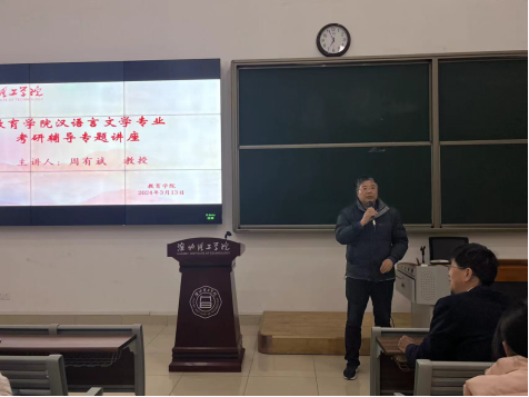 3月13日晚7点,澳门正规电子游戏平台汉语言文学专业在一教121教室举办了一场考研辅导交流讲座。本次讲座特邀周有斌院长担任主讲人,王家云院长担任主持人,旨在为广大考研学子提供宝贵的备考建议和指导。