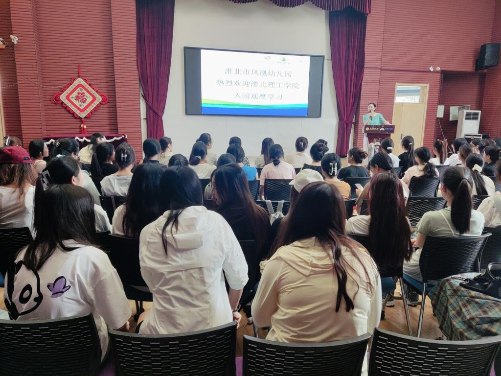 为推动学院学前教育专业学生的实践能力,6月20日上午,澳门正规电子游戏平台院长助理米玉、学前教育专任教师程志宏、郗佩佳、宋文平、郑洁、黄睿等老师,携手161位学前教育专业学生,共同走进淮北市凤凰国际幼儿园,展开实践教学观摩活动。此举旨在丰富学生课堂经验,拓展实践视野,促进专业学习全面升级。