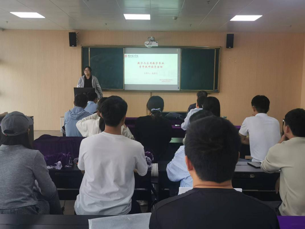 为激发青年教师工作积极性和创造性,全面提高青年教师教学质量,9月25日下午16点30分,数学与应用数学教研室在艺术楼301室开展银铃教师与青年教师教育教学经验指导交流活动。活动由数学与应用数学教研室主任仇恒方主持,6位银龄教师和13位新进青年教师参与。