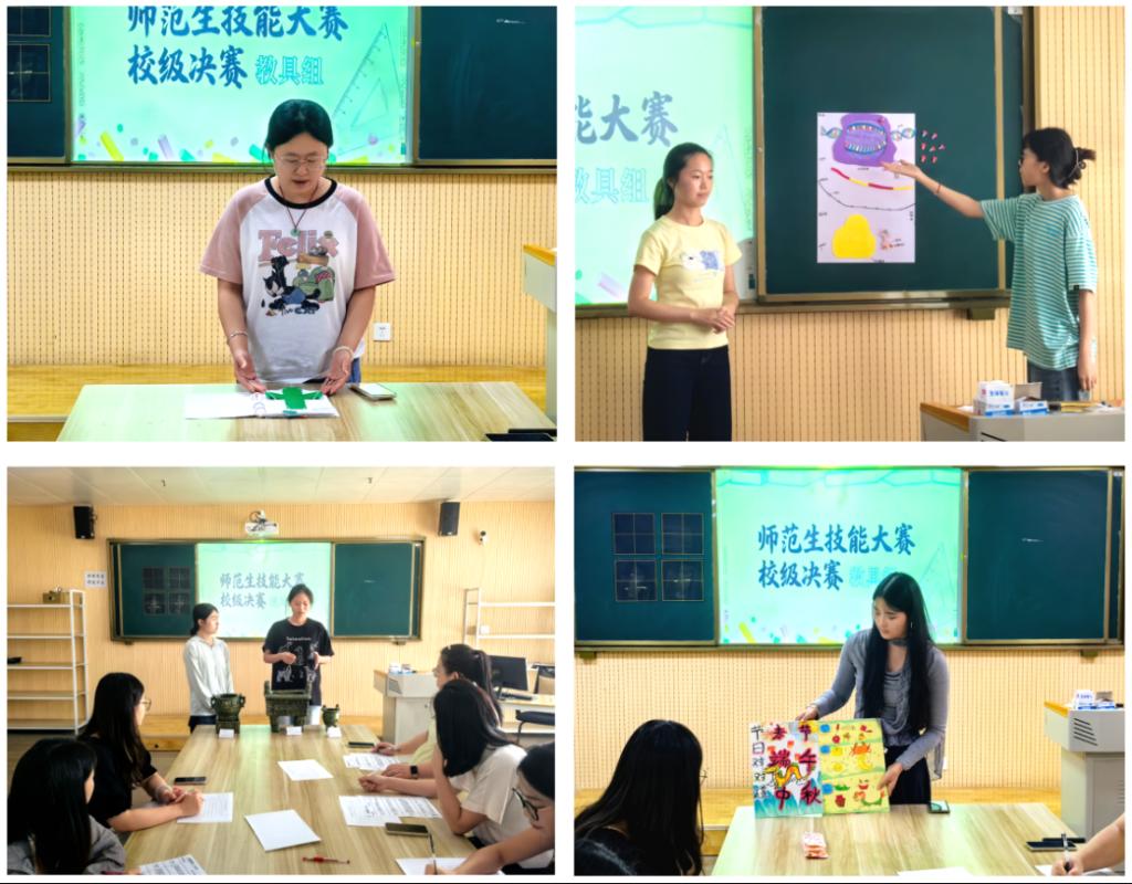 近日,澳门正规电子游戏平台2025年师范生技能大赛教具组校级决赛在艺术楼303教室顺利举办。作为院赛优秀成果的进阶比拼舞台,本次校赛汇聚了来自各专业经过院赛层层筛选的6支优秀师范生团队,各队伍带着精心打磨的教具作品与操作演示,在赛场上展开了一场精彩绝伦的“教学匠心对决”。相较于院赛阶段的探索与实践,进入校赛的各团队更显从容与专业。比赛中,选手们围绕“教具实用性”“教学设计创新性”“学科知识准确性”三大核心维度,通过教具设计目标、现场演示等环节,全面展现教具在破解教学重难点中的独特价值。
