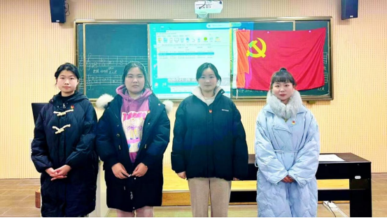会议伊始,全体起立,共同唱国歌。然后根据接收预备党员支部大会的规范流程,由李静怡、马晓贝、王安琪和陈婷婷四位发展对象,分别通过PPT展示和个人发言相结合的方式,展现了自己对党的认识和个人成长历程,四位同志的入党介绍人分别在会上详细介绍了他们的考察情况及四位同志的现实表现,支部其他同志也分别对四位同志的表现及是否同意他们加入党组织进行了发言。根据发展党员的相关规定,经参会党员投票,决定接收四位同学为中共预备党员,并由支委会老师为其现场佩戴党徽。