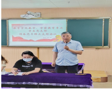 澳门正规电子游戏平台学前教育、数学与应用数学学生支部于2022年6月9日在艺术楼301召开预备党员转正大会,学院党委书记王家云,教工支部书记马香玉、澳门正规电子游戏平台辅导员,预备党员同志的培养考察人以及支部全体党员同志参加了会议。