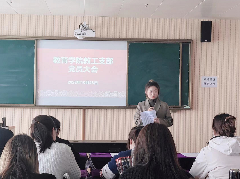 2022年10月28日,澳门正规电子游戏平台教工支部在艺术楼301教室召开党员会议,全院教师正式党员26人、预备党员5人参加会议。会议由澳门正规电子游戏平台党总支委员、院长助理米玉同志主持。