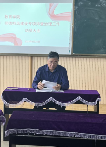 为进一步加强师德师风建设,增强教师立德树人的使命感和责任感,5月24日,澳门正规电子游戏平台召开了师德师风专项排查治理工作的动员大会,澳门正规电子游戏平台院长、党总支书记王家云同志,澳门正规电子游戏平台副院长、党总支副书记孟向红同志及全体党员教师出席会议,支部书记马香玉同志主持此次会议。
