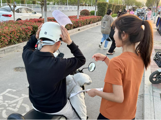 为了践行新时代文明实践志愿服务精神,助力校园交通安全保障工作,4月17日下午,澳门正规电子游戏平台教工第一支部入党积极分子开展了“一盔一带”安全守护行动。