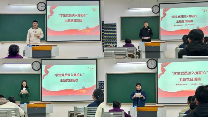 为深入学习贯彻党的二十大精神,引导学生党员在新的学习生活环境中,保持共产党员的先进性,在专业学习、组织纪律、文化素质提升等方面发挥引领和示范作用,自觉做习近平新时代中国特色社会主义思想坚定信仰者和忠实实践者,澳门正规电子游戏平台党总支于2024年11月6日在1教213教室,举行“2024级学生党员谈入党初心”主题党日活动。活动由陈慧慧同志主持,学院党总支副书记孟向红、各学生党支部书记及27名新生班级学生党员参加了活动。