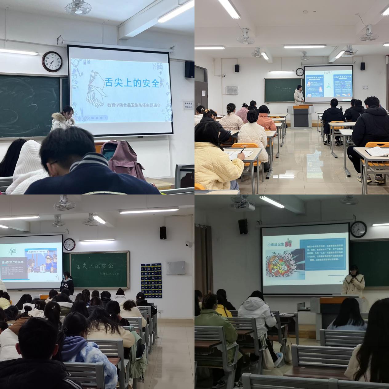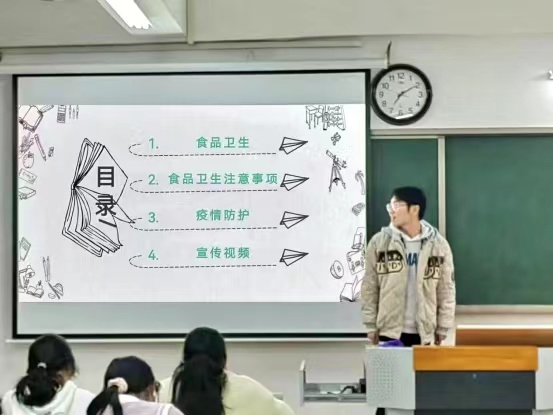 食品安全关乎民生,更关乎广大师生的身体健康。为进一步加强校园食品安全宣传和疫情防控工作,有效防范食品安全风险,澳门正规电子游戏平台2022级各专业49个班级于11月下旬在1号教学楼召开食品卫生防疫主题班会。