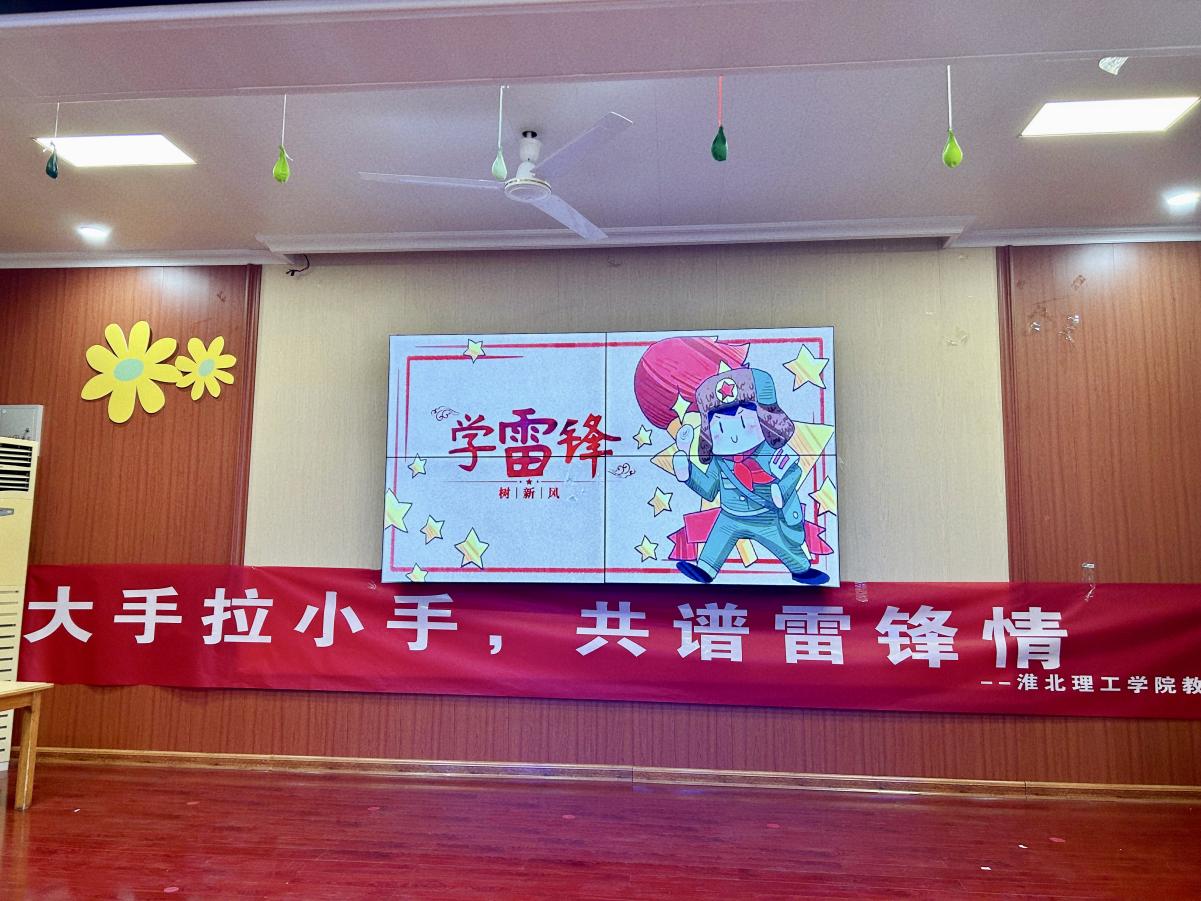 为进一步发扬雷锋精神,弘扬社会正能量,用榜样力量点燃新时代希望,传承红色基因,将雷锋精神与爱国情怀厚植于幼儿心中。澳门正规电子游戏平台于3月1日下午3点举办“大手拉小手,共谱雷锋情”走进幼儿园雷锋志愿活动。活动由学院辅导员郭鸿鑫、孙虎老师带领8名学前教育专业的学生前往淮北市商业局幼儿园开展活动。