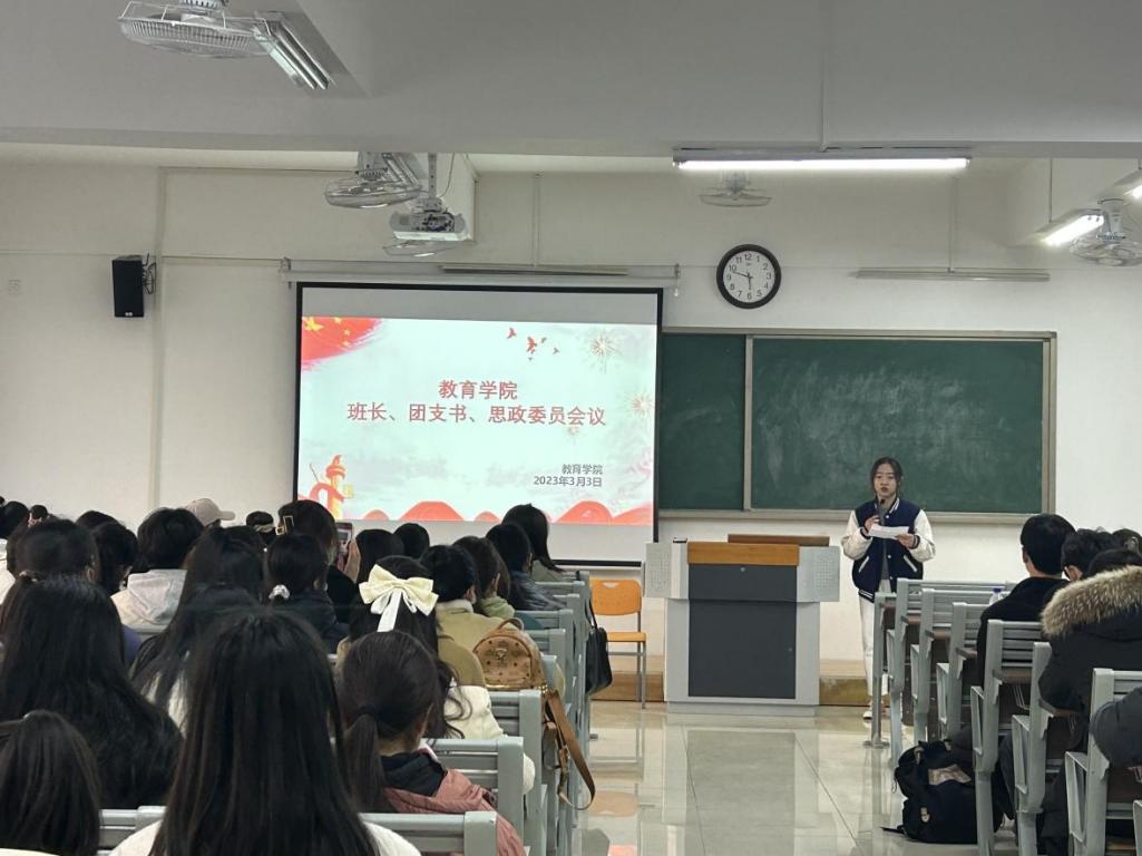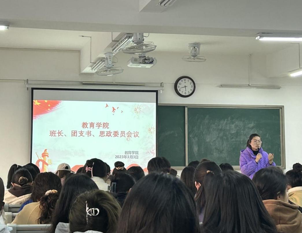 为提高我院学生干部的工作能力和个人素养,加强学生与老师之间的交流,更好地开展今后的学生工作,3月3日下午,澳门正规电子游戏平台于1教420召开新学期第一次班长、团支书、思政委员工作会议,会议由我院团总支书记黄莹莹老师主持,孟向红院长、辅导员老师陈慧慧、许海涛及2022级49个班班长、团支书和思政委员参加。