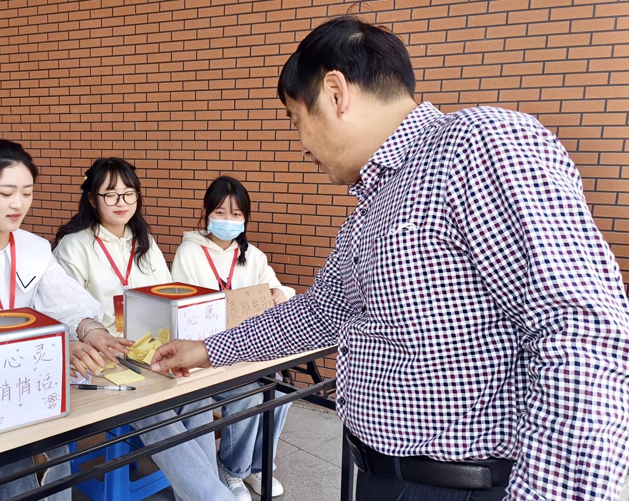 在开展活动期间,志愿者们分别命名“心愿便利贴”和“心灵悄悄话”两个心愿箱作为桥梁,参与者可以通过写下便利贴来抒发情绪和内心的美好愿望,志愿者们成立心灵联络员来帮助参与者缓解不良情绪和提供心理慰藉,以实际行动践行服务精神。