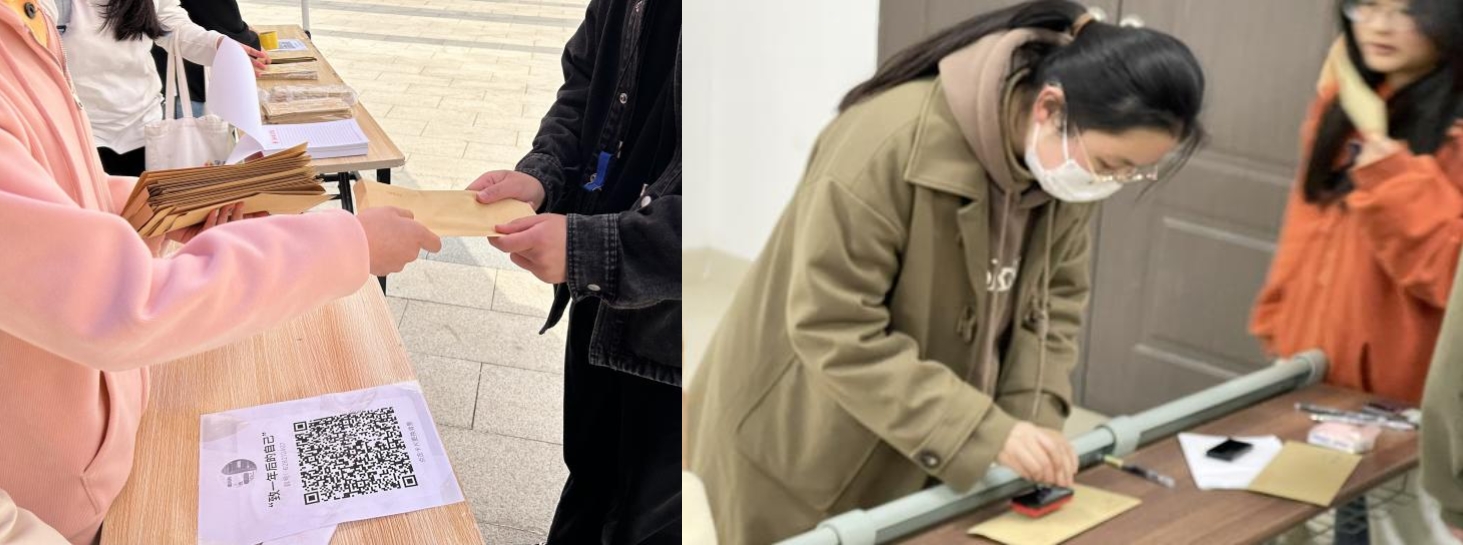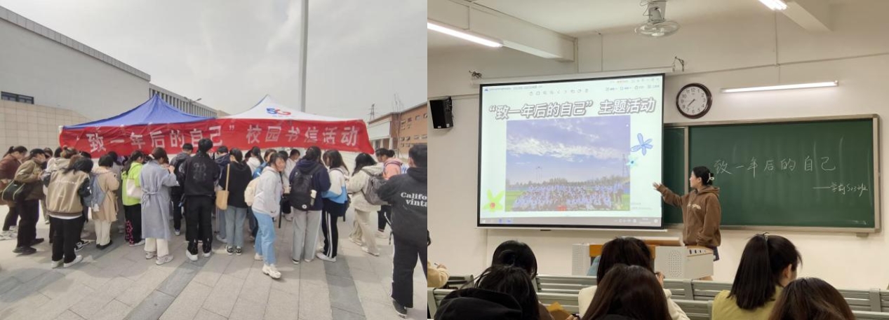 为了更好地引导学生珍惜当下、规划未来,澳门正规电子游戏平台2023年3月15日—17日在体育馆前广场成功举办“致一年后的自己”校园书信撰写活动。活动由2022级辅导员陈慧慧老师指导,2022级学前教育(专升本)9-14班同学在校园宣传、组织。