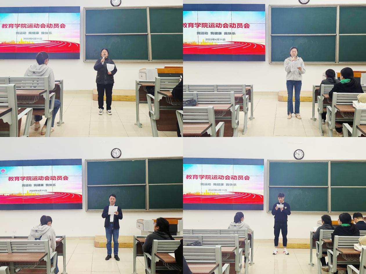 为全面部署、动员和安排好各项工作,确保2023年春季田径运动会顺利、圆满、成功举行,澳门正规电子游戏平台于2023年4月11日下午于1号教学楼121教室召开第一届运动会动员会。学院分管副书记孟向红、院团总支书记黄莹莹、团总支副书记许海涛及全体辅导员老师、全体运动员、22级普本班级班长团支书参加了会议,会议由团总支书记黄莹莹主持。