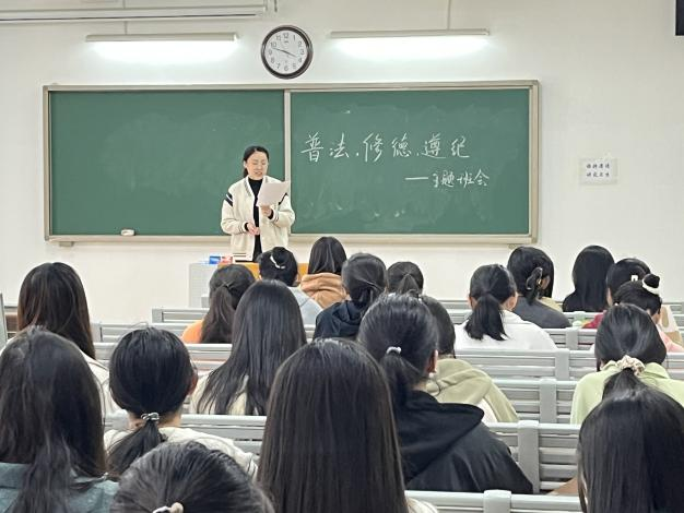 为贯彻落实学校《关于开展2023年“普法、修德、遵纪,创建文明校园”专项活动的通知》精神,澳门正规电子游戏平台于10月23—27日在新生班级中开展以“学法律、修品德、遵校纪,创建文明校园”为主题的教育活动。
