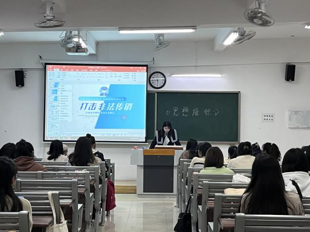 活动以主题班会形式展开,辅导员老师们为主题班会设计了PPT介绍、互动问答、小组讨论等环节,生动地向同学们普及了宪法、刑法、治安管理条例、社会主义核心价值观、教育部学生管理规定、学校学生违纪处分办法、学生住宿管理规定等方面知识。