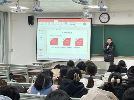 会上,辅导员老师们要求大家合理规划“元旦假期”,积极调整自己的学习和生活状态,劳逸结合,为期末考试积极做好准备。离校返家的同学要按规定报告自己的往返时间和车次。从寝室用水用电、交通、卫生健康、消防、居家生活、防范电信诈骗、防寒保暖等方面对学生进行了安全主题教育。告诫同学们一定要遵守交通规则,保持良好卫生习惯,学习和掌握消防知识,不在寝室使用违规电器、不私拉乱接电线网线等,提醒同学们离校前进行宿舍安全卫生自查,将门窗紧闭,以免造成水管爆裂事故发生。
