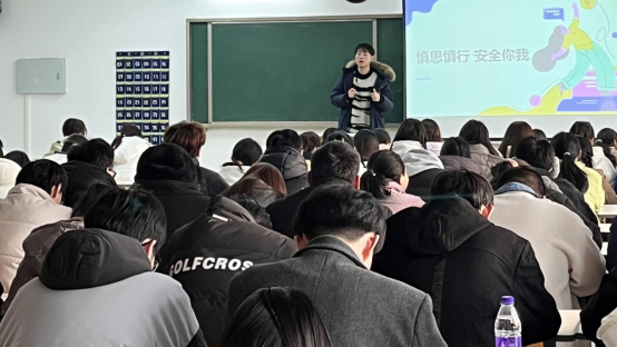 会上,辅导员老师们还布置了新学期的相关工作。提醒有缓考、补考任务的同学要及时复习,端正态度完成考试;对防范电信诈骗做了安全提示和案例分析,要求每位同学都要谨防电信网络诈骗,守护个人财产,做到同学之间相互监督,师生之间互通有无;提醒同学们注意换季食品卫生安全,营造安全和谐的宿舍氛围,向同学们传达了安全知识和防范技巧;最后,要求同学们在新学期初做到“收心沉淀”,以严谨的态度迎接新学期的学习任务,为每位同学注入满满正能量。