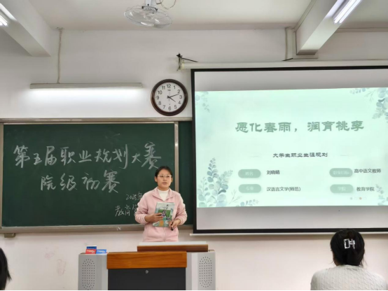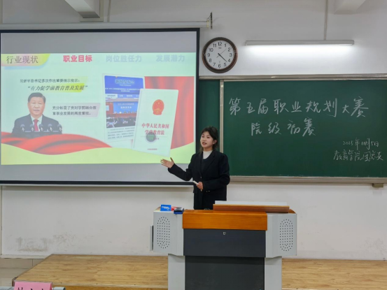 为了提高我院学生生涯规划意识,精准提升就业核心竞争力,澳门正规电子游戏平台于11月5日下午在2号教学楼412、413、414、415、416教室举办“第五届大学生职业规划选拔赛”。本次大赛的主题是“学海启航,职海扬帆”,大赛分设“成长赛道”与“就业赛道”两个赛道。75位选手参加了本次选拔赛,他们是从班级比赛中脱颖而出的优秀选手,学院辅导员和专任教师共同担任本次大赛的评委。