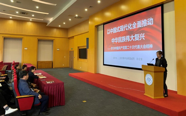 动员会当天,三个学院举行了主题教育首次专题学习,邀请共青团中央、上海市青年讲师团成员孙会岩副教授作“以中国式现代化全面推进中华民族伟大复兴——学习中国共产党第二十次全国代表大会精神”讲座。孙会岩从党的二十大召开的意义、党的二十大报告的重要内容以及学深悟透落实党的二十大精神的举措三个方面讲述了以中国式现代化全面推进中华民族伟大复兴的系列重大理论和社会实践。通过学习,全体教职工进一步统一了思想、统一了意志,为学院各项事业的健康发展提供坚定的思想保证。
