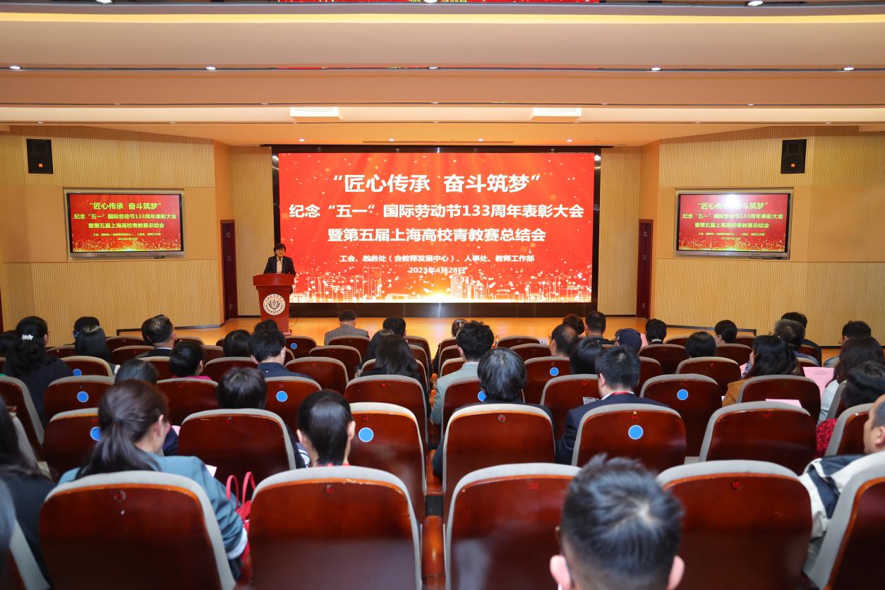 4月28日下午,由工会牵头主办的“匠心传承 奋斗筑梦”纪念“五一”国际劳动节133周年表彰大会暨第五届上海高校青教赛总结会在北苑1号楼200人报告厅召开。校党委书记郭永瑾,党委副书记、副校长唐红梅,党委副书记于莹出席会议,教师工作部、人事处、教务处(教发中心)、工会负责人,各学院教学部党组织负责人、分管教学副院长,学校工会委员、部门工会主席,获奖代表、青教赛选手和青年教师代表等六十余位老师参加。会议由于莹主持。