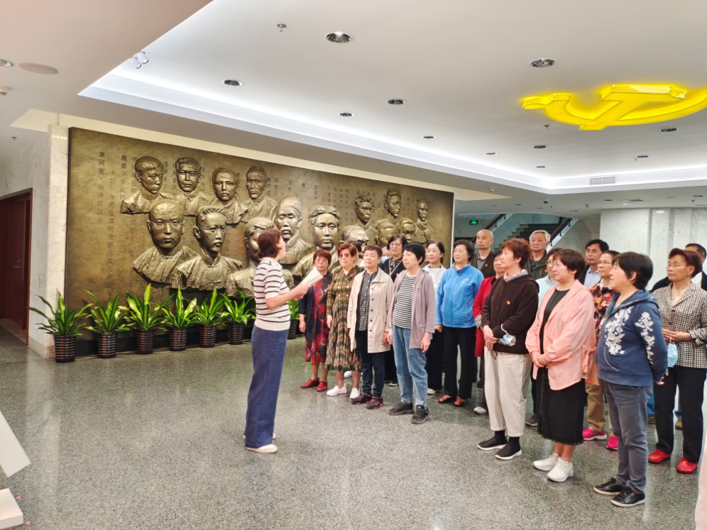 在“伟大的开端——中国共产党创建历史陈列”展览厅,离退休党总支负责人郁建新领学《习近平新时代中国特色社会主义思想专题摘编》,拉开了党员老师们跟着书本研学的序幕。她指出“中国共产党领导是中国特色社会主义最本质的特征”,介绍了书中有关在党的坚强领导下,党和国家事业发生历史性变革的论述。当前,离退休党总支正值建设时期,她呼吁广大离退休党员应加强《专题摘编》学习,做到退休不褪色,银铃映初心,共同推进离退休党总支的建设。