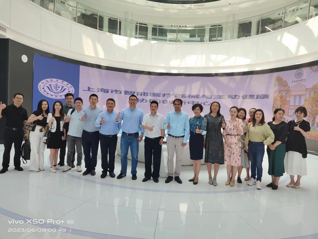 座谈会前,范金成一行在学校参观了上海市智能医疗器械与主动健康协同创新中心。